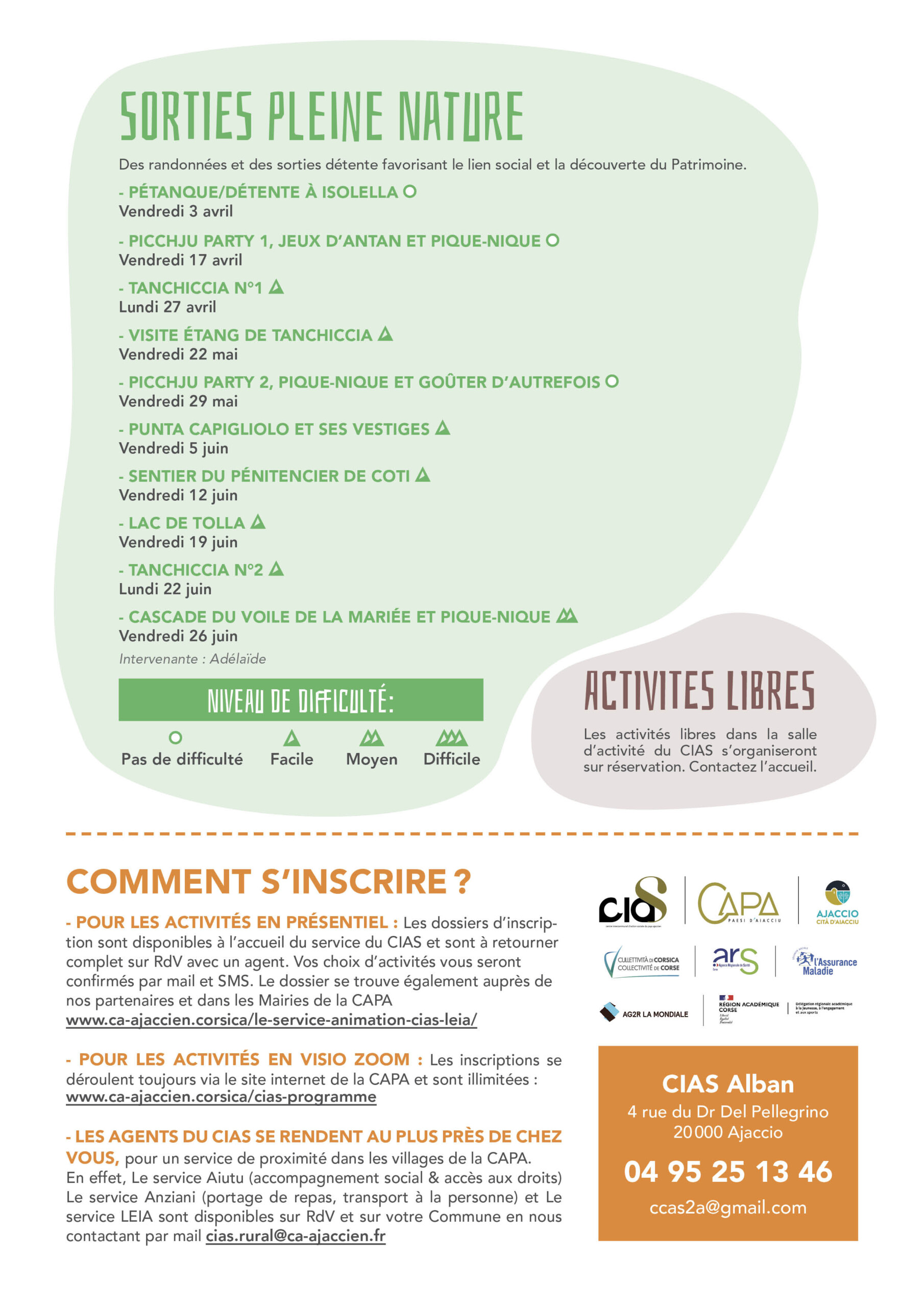 Enfin, avec l’arrivée des beaux jours, les sorties nature, randonnées et moments festifs viendront ponctuer le trimestre et renforcer le plaisir de partager des instants conviviaux.